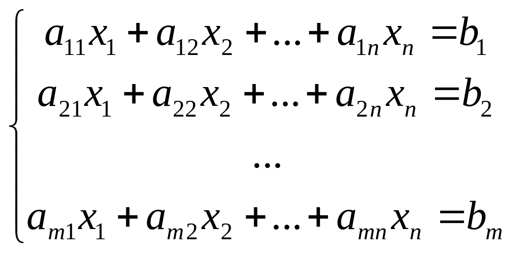 Система m линейных уравнений с n переменными в общем случае имеет вид:
