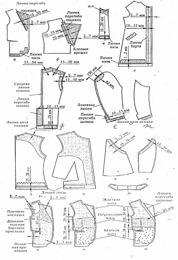 Полочки и спинки укрепляют клеевыми прокладками шириной 15-50 мм