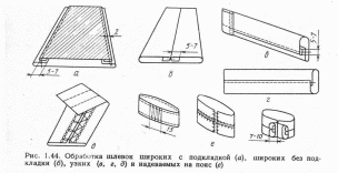 Детали с мягкой подкладкой обтачивают на полуавтоматах типа 570 кл. ПО «Подольскшвеймаш», с жесткой подкладкой - накладными краевыми швами с открытыми или закрытыми срезами.