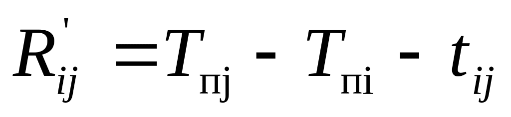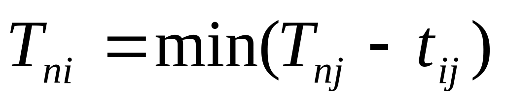 Пізній строк здійснення попереднього Tni визначається як різниця між пізнім строком здійснення наступної події Tnj і тривалістю роботи tij, тобто