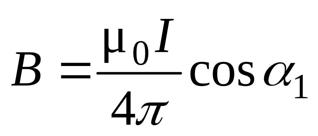 Заметим, что при симметричном расположении точки А относительно отрезка провода cos 2 = – cos 1. С учетом этого формула (3) примет вид