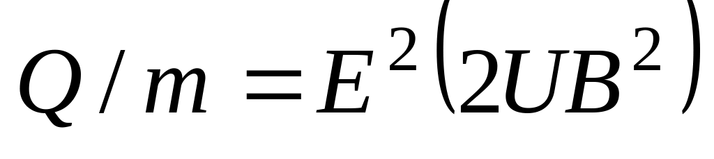 Пример 11. Альфа-частица прошла ускоряющую разность потенциалов U = 104 В и влетела в скрещенные под прямым углом электрическое (Е = 10 кВ/м) и магнитное (B = 0,1 Тл) поля. Найти отношение заряда альфа-частицы к ее массе, если, двигаясь перпендикулярно обоим полям, частица не испытывает отклонений от прямолинейной траектории.