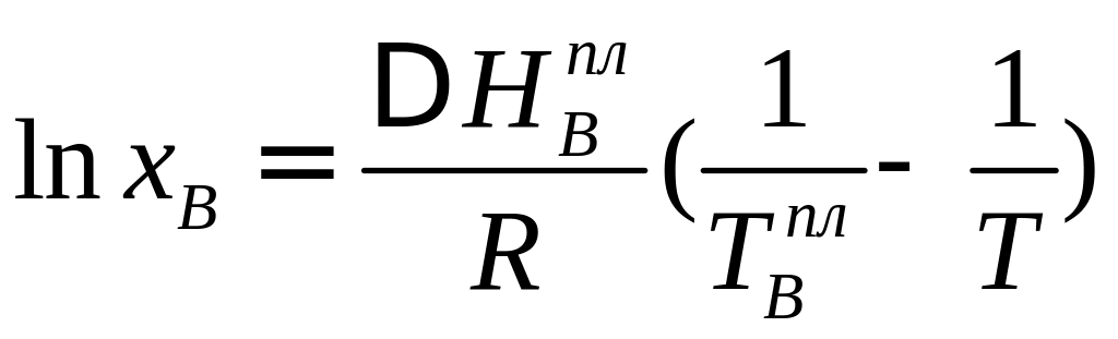 Из (III.3.8) видно, что природа растворяемого вещества B– примеси – не влияет на температуру первичной кристаллизации растворителя. Имеет значение только количество взятого вещества (mB/MB).. Это позволяет говорить о том, что рассматриваемый эффект отражает коллигативные свойства разбавленных растворов.
