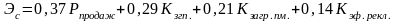 - •0,37; 0,29; 0,21; 0,14 – Коэффициенты весомости показателей.