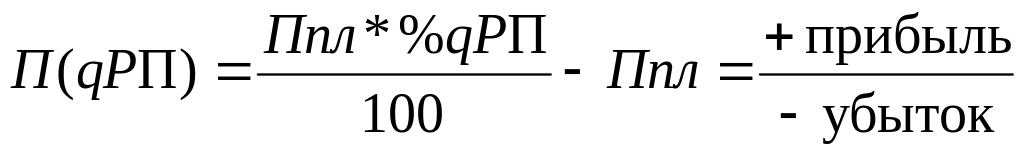 П(Ц)=(Цф-Цпл)*qф=+ прибыль; - убыток.