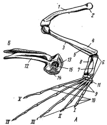 отросток, 7 — запястье, 8 — пясть, 9 —