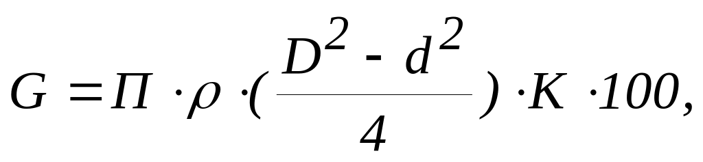 где Д – наружный диаметр слоя по спецификации, см; d – внутренний диаметр слоя по спецификации, см; К=1.04 – коэффициент, учитывающий создание гофра для рукавов с проволочной спиралью.