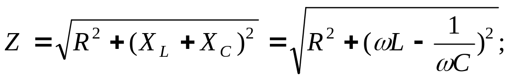 де R, XL, XC, Z– відносно активний, індуктивний, ємкісний і повний опір кола.