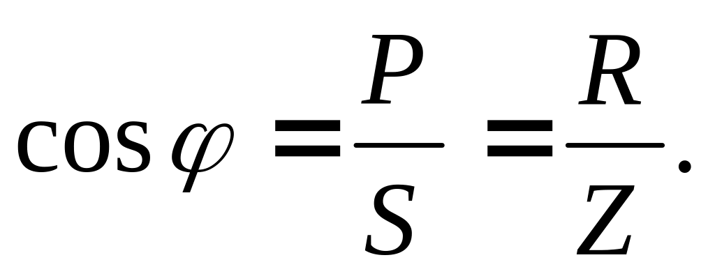 Із трикутників опорів знаходимо повний опір кола синусоїдного струму та кут зсуву фаз: