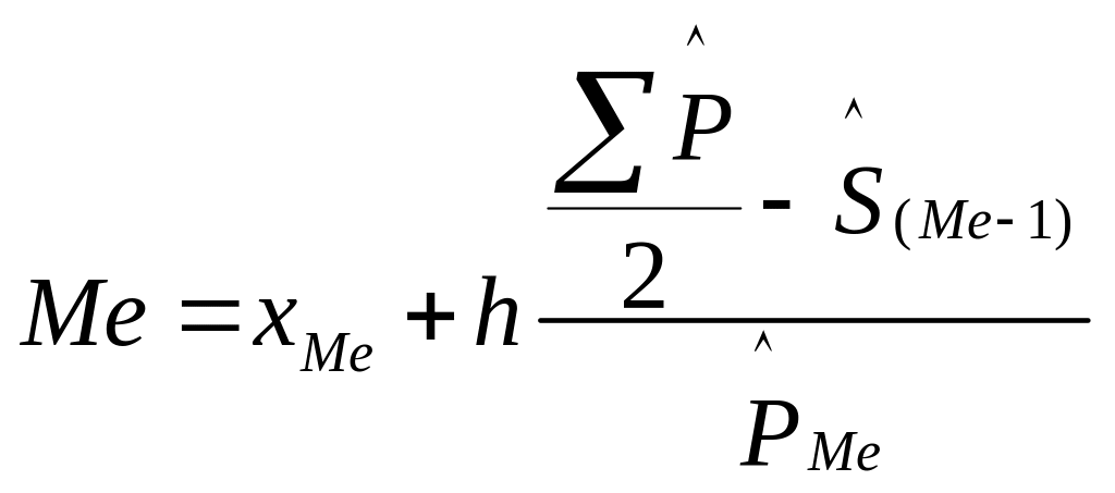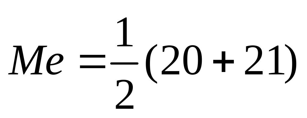 Если ряд содержит четное число значений признака, то медиана определяется по формуле: