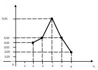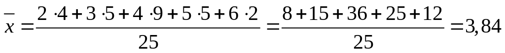 1) Строим вариационный ряд: 2; 2; 2; 2; 3; 3; 3; 3; 3; 4; 4; 4; 4; 4; 4; 4; 4; 4; 5; 5; 5; 5; 5; 6; 6.
