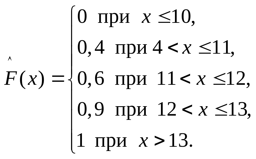 3) По ряду распределения относительных частот строим эмпирическую функцию распределения . Имеем: