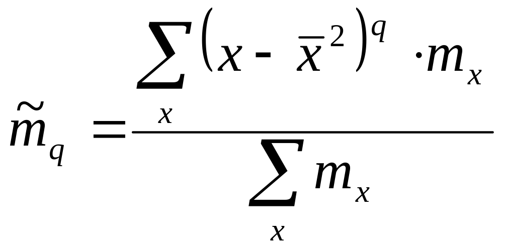 Центральним моментом порядку q називають середнє арифметичне q степенем відхилень варіантів від їх середнього арифметичного: