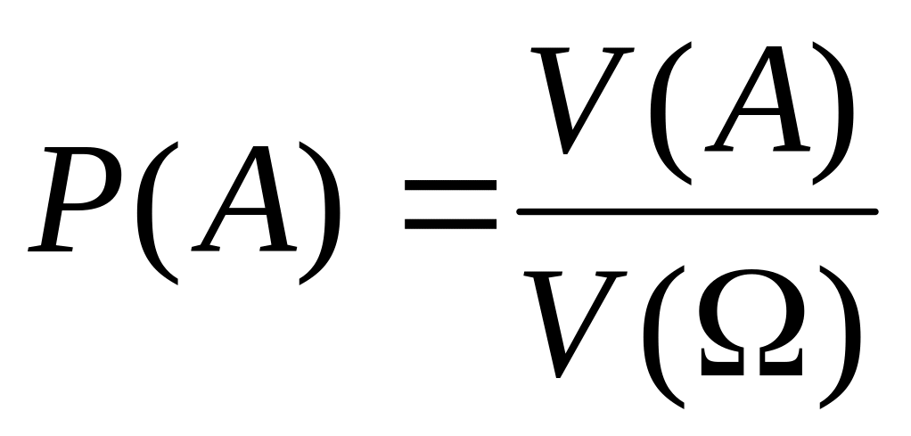 Пусть N – общее число равновероятных исходов, n – число исходов, благоприятствующих событию А; вероятность события А равна