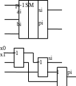 Як видно із запису функція si може бути представлена у вигляді конституєнт одиниці, жодна пара з яких не може бути склеєна, тоді як результат переносу представляється у спрощеному вигляді диз’юнкції попарних кон’юнкцій всіх аргументів. Таку схему реалізовують з допомогою складних логічних елементів типу І-АБО-НЕ чи АБО-І-НЕ.