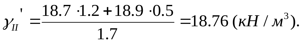 Осереднене розрахункове значення питомої ваги ґрунтів, що залягають нижче підошви фундаменту при ширині підошви b = 2.0 м і Z = =1,0 м [6, п.2.177]