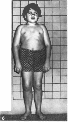 - •6, А та же больная в возрасте 18 лет. Грубые черты лица, гнпертелоризм, плоская переносица, грубые скелетные деформации, контрактуры суставов.