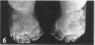- •6, А та же больная в возрасте 18 лет. Грубые черты лица, гнпертелоризм, плоская переносица, грубые скелетные деформации, контрактуры суставов.