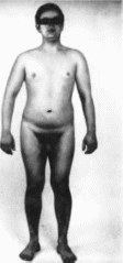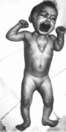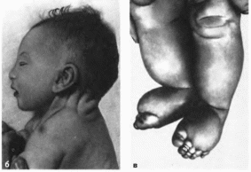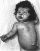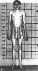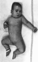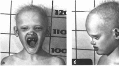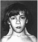 - •6, А та же больная в возрасте 18 лет. Грубые черты лица, гнпертелоризм, плоская переносица, грубые скелетные деформации, контрактуры суставов.