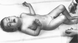 - •6, А та же больная в возрасте 18 лет. Грубые черты лица, гнпертелоризм, плоская переносица, грубые скелетные деформации, контрактуры суставов.