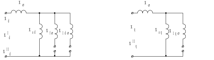 На рисунке 2 представим схему замещения турбогенератора по продольной и поперечной осям.