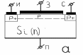 Полевой транзистор с изолированным затвором - это полевой транзистор, затвор которого отделен в электрическом отношении от канала слоем диэлектрика. Полевой транзистор с изолированным затвором состоит из пластины полупроводника (подложки) с относительно высоким удельным сопротивлением, в которой созданы две области с противоположным типом электропроводности (рис.2). На эти области нанесены металлические электроды - исток и сток. Поверхность полупроводника между истоком и стоком покрыта тонким слоем диэлектрика. На слой диэлектрика нанесен металлический электрод - затвор. Получается структура, состоящая из металла, диэлектрика и полупроводника. Поэтому полевые транзисторы с изолированным затвором часто называют МДП - транзисторами или МОП - транзисторами (металл - оксид - полупроводник).