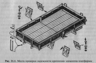 На рис. 21.1 показаны места проверки надежности крепления элементов платформы.