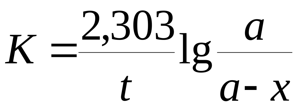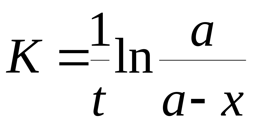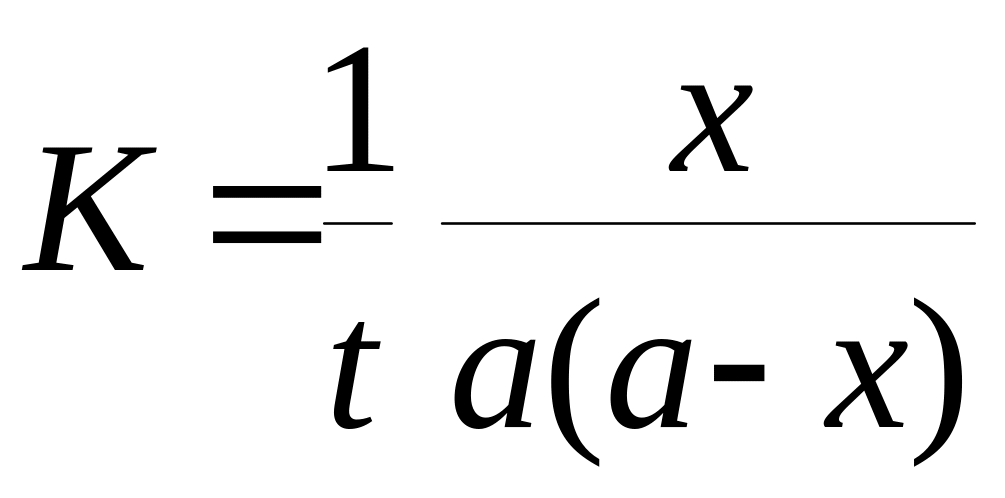 Константа скорости реакции для реакций второго порядка, когда концентрации реагирующих веществ равны между собой (а=в) рассчитываются по уравнениям