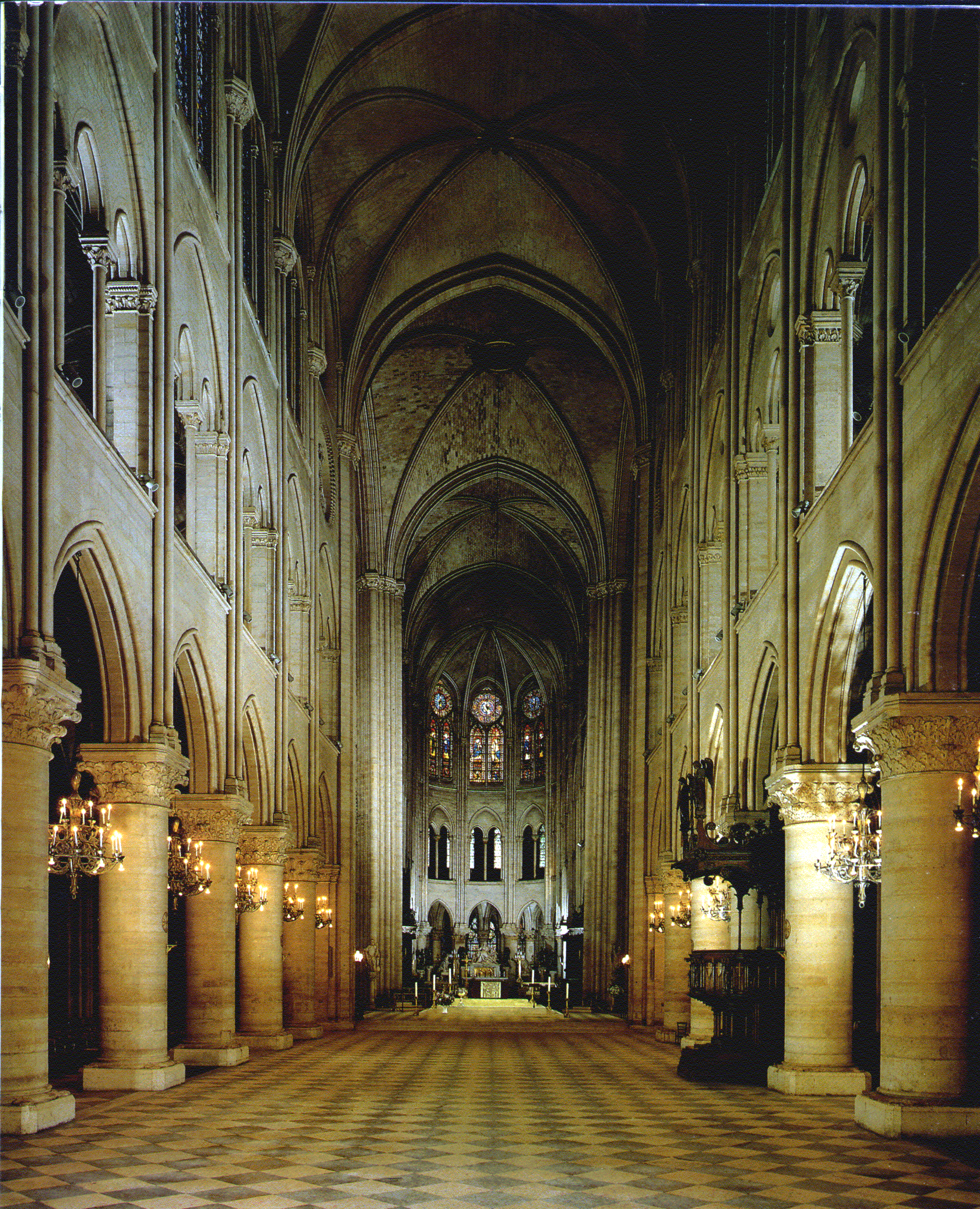 Готическое искусство (как и романское) утвердило в храмовой архитектуре так называемый базиликальный принцип, предполагавший особое строение собора, имевшего в плане форму вытянутого прямоугольника с расширяющимися нефами.