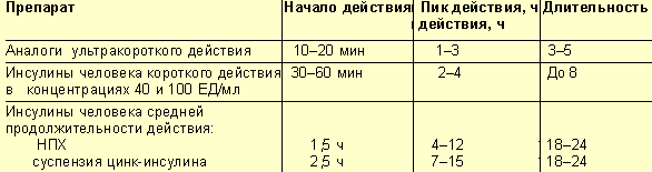Препараты инсулина пролонгированного действия — включают в себя препараты средней продолжительности действия и препараты длительного действия.