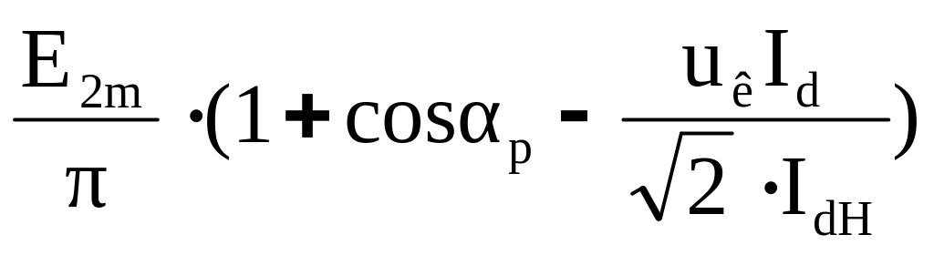 Если принять мгновенное значение ЭДС вторичной обмотки равным е2 = Е2m·sinωt , то среднее значение выпрямленного напряжения с учетом угла регулирования и угла коммутации тиристоров равно