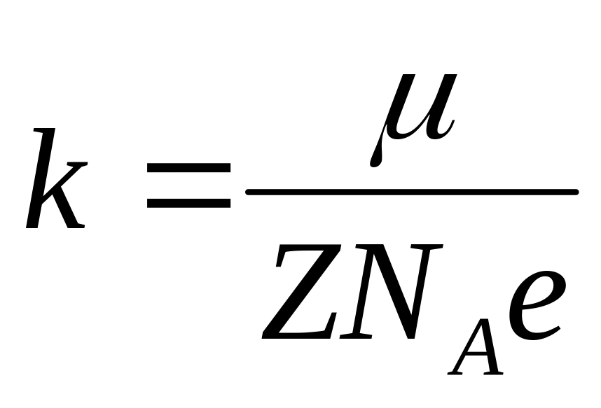 Для кожного хімічного елемента можна у виразі виділити сталу величину k, яку називають електрохімічним еквівалентом речовини: