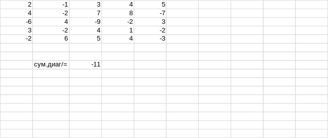 Дана прямоугольная матрица Ci,j,, размером 5*5. Если данная матрица является квадратной, найти сумму элементов главной диагонали, в противном случае найти сумму всех членов матрицы.