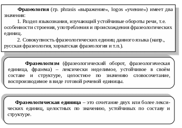 Во фразеологизмах слова (компоненты) утра-тили свою лексическую, семантическую са-мостоятельность и выражают понятие как одна лексическая единица |