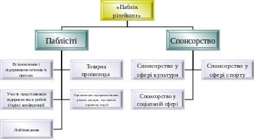 РR складається з двох відносно самостійних напрямів: пабліситі (пропаганди) і спонсорства (рис.8.9).