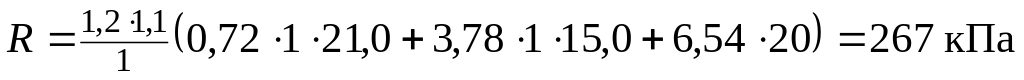 Вычисляем R на поверхности слоя суглинка в точке 1 при d1 =1,0 м и II = 15,0 кН/м3