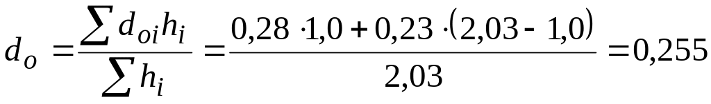 Ниже глубины 1 м залегают суглинки с d02 = 0,23, поэтому dfn необходимо уточнить по средневзвешенному значению d0 .