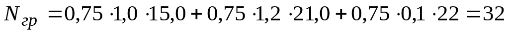 Из условия размещения фундаментной подушки высотой 0,5 м, блоков стен подвала высотой 0,6 и 0,3 м и армированного пояса толщиной 0,1 м окончательно принимаем d = 3 0,6 + 0,3 + 0,5 + 0,1 = 2,7 м, то есть подошва фундамента находится на отметке –3,200 (рис. 1). Принимаем db = 2 м, так как глубина подвала 2,1 > 2 м (см. пояснения к формуле (7) [1]).