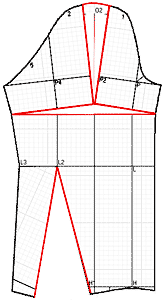 Разделение полочки и спинки на распечатанной основе при заходе боковых срезов одного за другой Р |