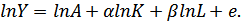 Где Y-объем производства, К-затраты капитала, L-затраты труда.