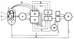 –показники гомеостазу: 7 –гумо-ральні впливи;IX –рецептори: 8 –нервовівпливи.
