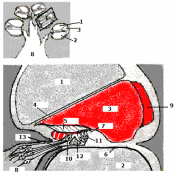 ганглій, 9 -судинна смужка, 10 -зовнішні