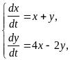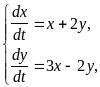 удовлетворяющее начальным условиям x(0)=2, y(0)=1.