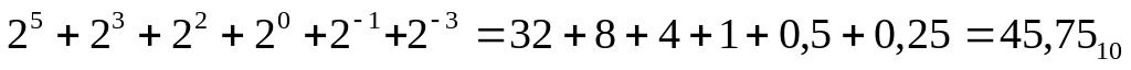 2) переводится дробная часть числа умножением ее на основание системы счисления до получения либо нулевого остатка после запятой, либо до заданной степени точности, при этом полученное число записывается слева от запятой сверху вниз. На рисунке 1 приведен пример перевода десятичного числа 45,75 в двоичное.