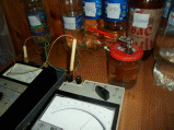 Вольтметр і амперметр представляє собою звичайні лабораторні прилади радянського зразку, а електролізер був сконструйований у вигляді скляної банки в яку поміщається мідні пластини розміром 5 на 5см. та на віддалі 5 см. одна від одної, тобто створюють 125 см3 електролітичного простору.