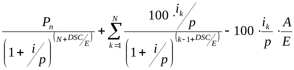 Перший доданок - дисконтована сума погашення облігації (її номіналу). Другий доданок – сумарний купонний дохід за інтервал часу між датою купівлі і датою погашення ЦП. Третій доданок (зі знаком мінус) – накопичений купонний дохід за період часу від дати останньої купонної виплати до дати купівлі ЦП.