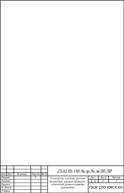 Лабораторная работа № 15 «Устройство и работа рулевых механизмов, рулевых приводов, усилителей рулевого привода»