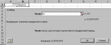 Возвращает значение квадратного корня из неотрицательного числа. Аргумент имеет наименование «Число» и может задаваться как константа или ссылка на ячейку. Если аргумент представляет число отрицательное, то функция КОРЕНЬ возвращает предупреждение об ошибке – «#ЧИСЛО!».