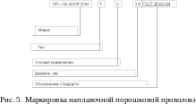 Кроме марки порошковая проволока также имеет условное обозначение, содержащее четыре группы буквенных и цифровых индексов: