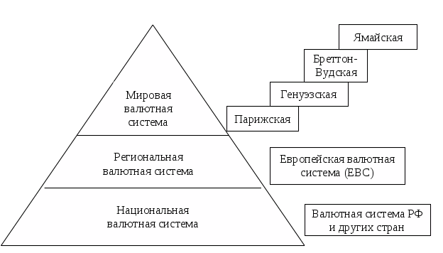 Различаются национальная, региональная и мировая валютные системы (Рис. 1).